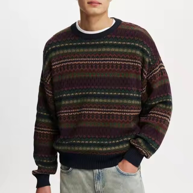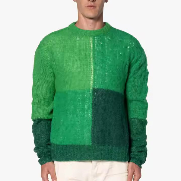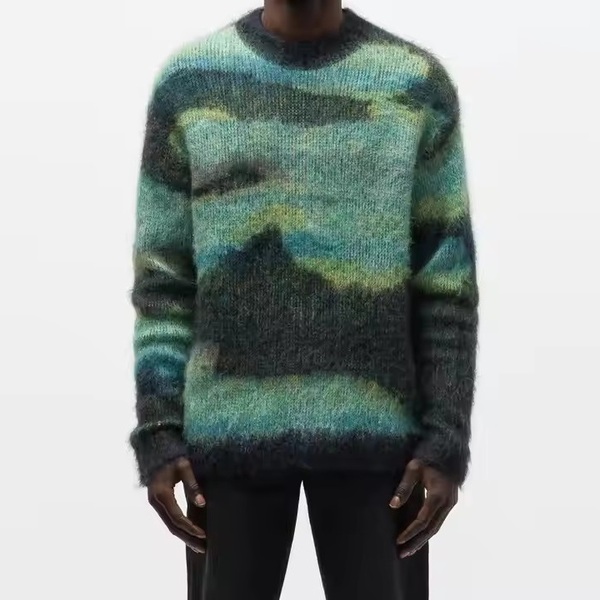 Mens Mohair Knit Jacquard Pullover Sweater