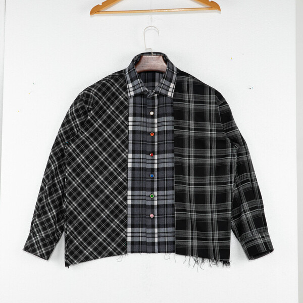 2Pcs Mens Fashion Patchwork Plaid Shirt