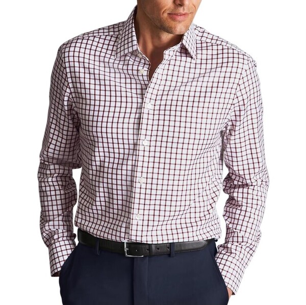 2Pcs Cotton Long Sleeve Slim Fit Plaid Mens Dress Shirt