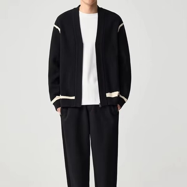 2Pcs Mens Casual Knit Zipper Cardigan